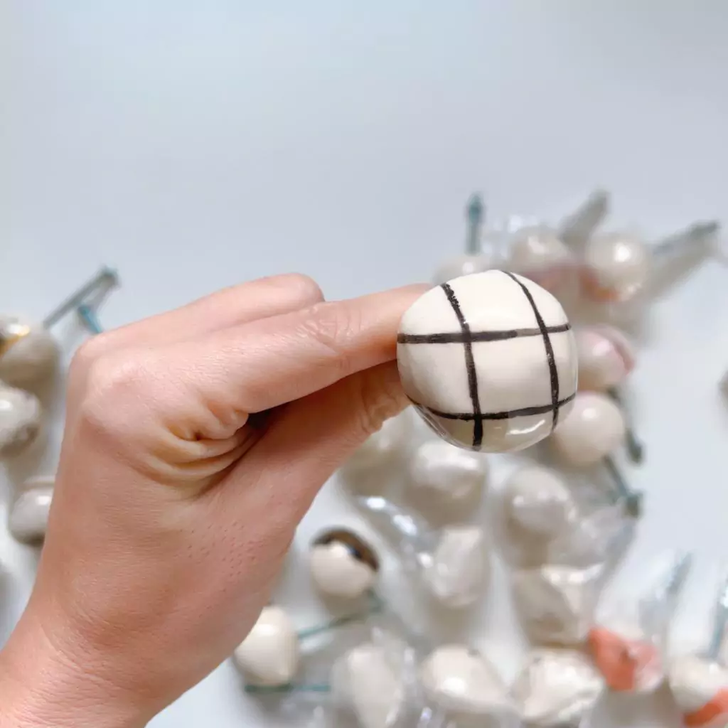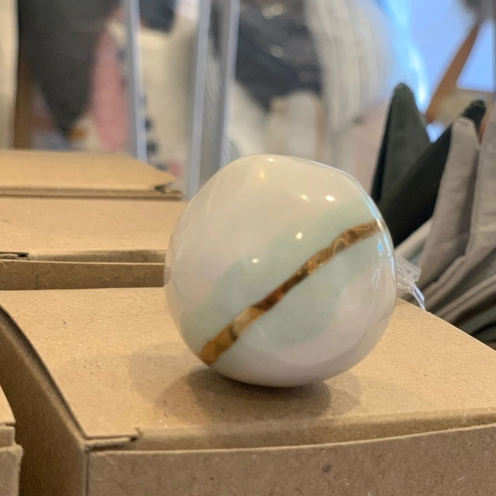 Decora y realza cualquier mueble o puerta con estos bellos tiradores realizados artesanalmente, con la calidez de la cerámica que le da un specto único a cada pieza.Detalles en oro. Posee varilla roscada larga de aprox 5/6 cm de largo. Pelota de cerámica de aprox 3,5 cm. Puede variar al tratarse de un producto artesanal. 08-.