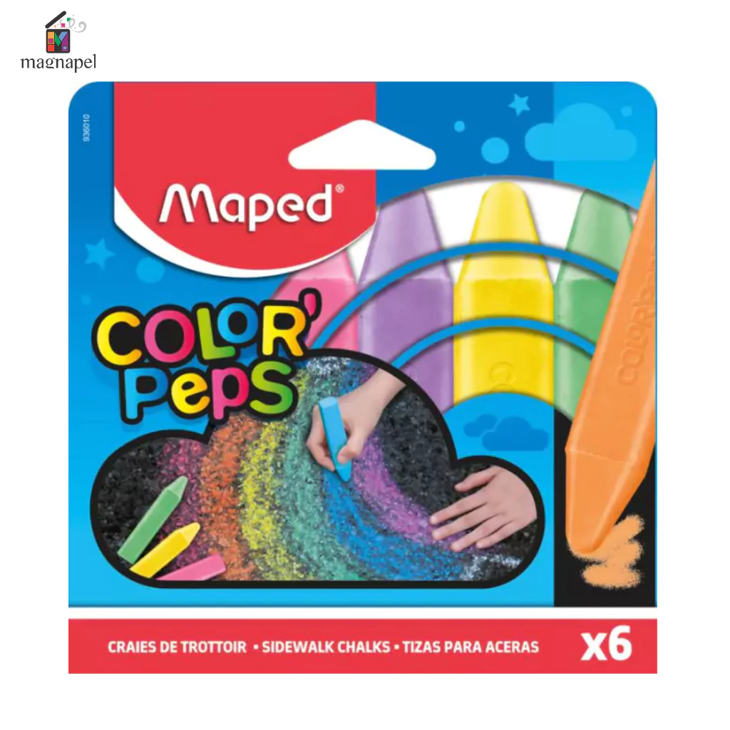 Llegaron las Tizas Color´Peps con increíbles colores para que los chicos se diviertan! Tiza de colores de gran diámetro para mejorar la sujeción por parte de los más pequeños. Son ideales para pintar sobre asfalto, cemento, vereda, incluso en el salón de clase para lograr dibujos a gran escala y jugar a las clásica rayuela, entre otros. Se lava fácilmente con agua.