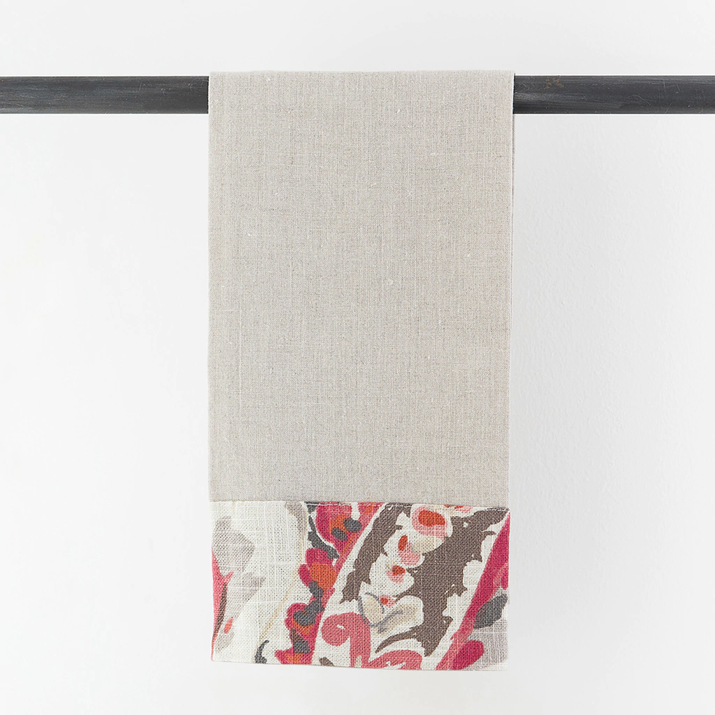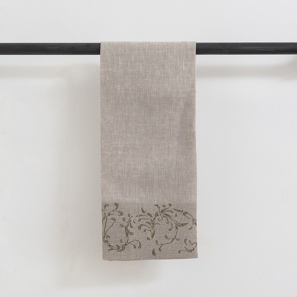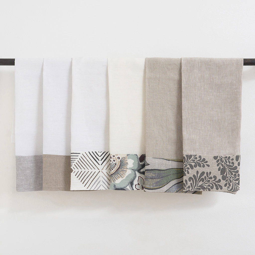 Toallitas de mano Base de Lino o Hilo Belga de color blanco, marfil, piedra, piedra oscuro o gris.Con guarda estampada o lisasMedida 45x60 cm.