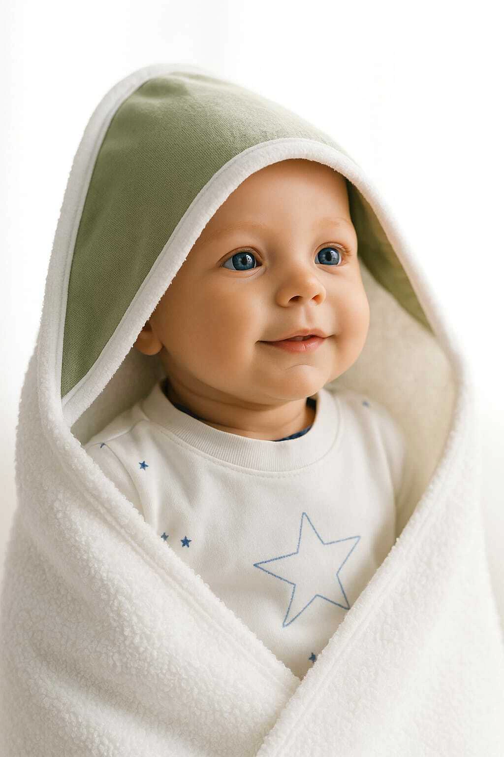 ¡TOALLÓN CON CAPUCHA SÚPER AMPLIO! Para envolver a tu bebé en un abrazo de suavidad y confort después del baño. Nuestro toallón no es solo un accesorio; es una experiencia de secado pensada para cuidar la piel más delicada.