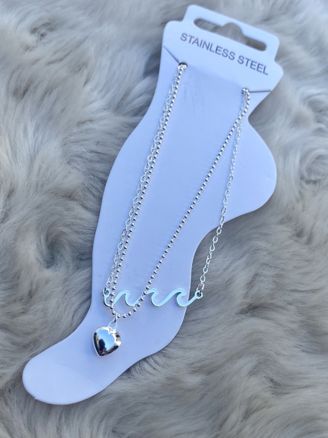 Tobillera Ola Doble Corazón Inflado