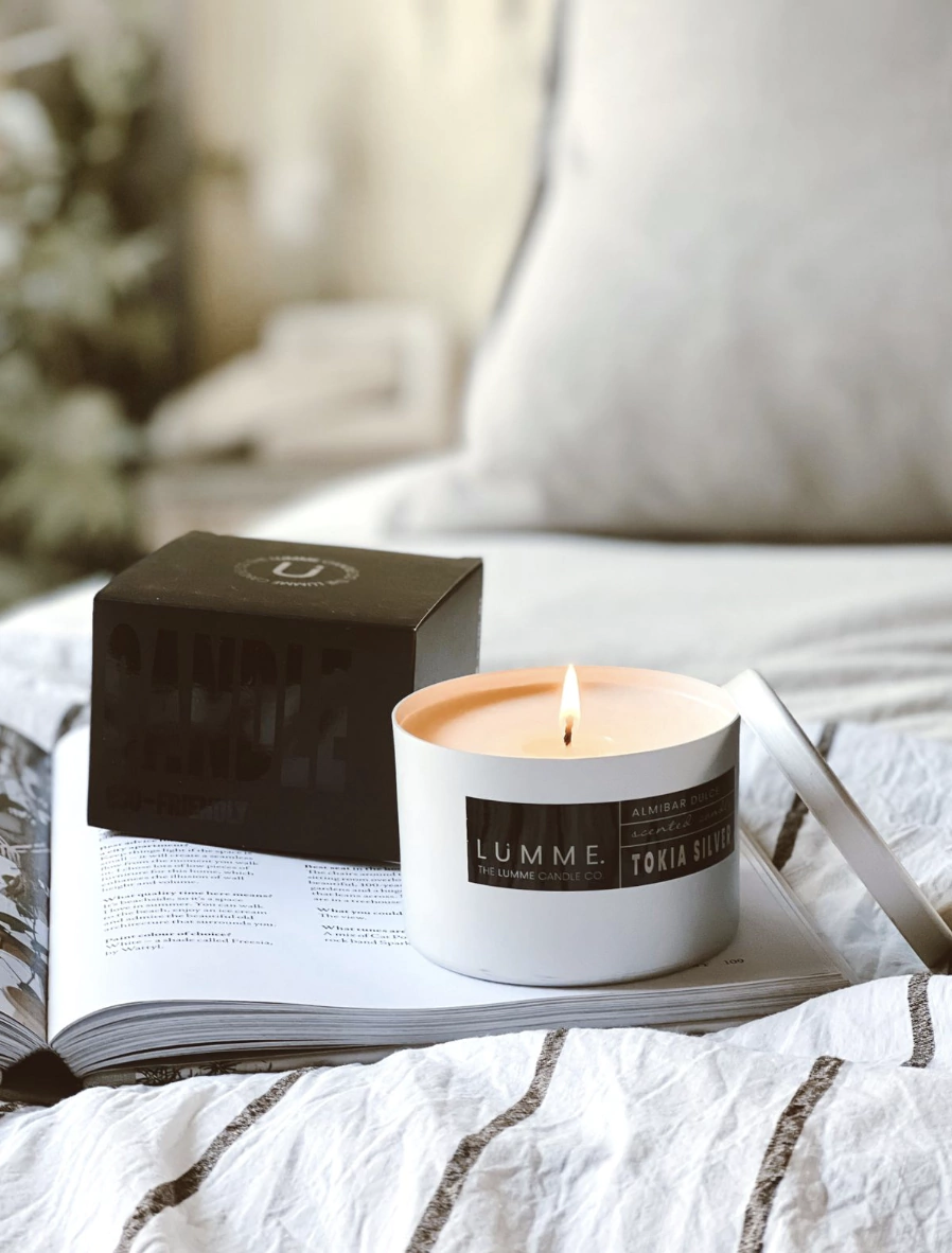 En un envase metálico arenado opaco, en Color Plata, con fragancia de esencia natural Almibar