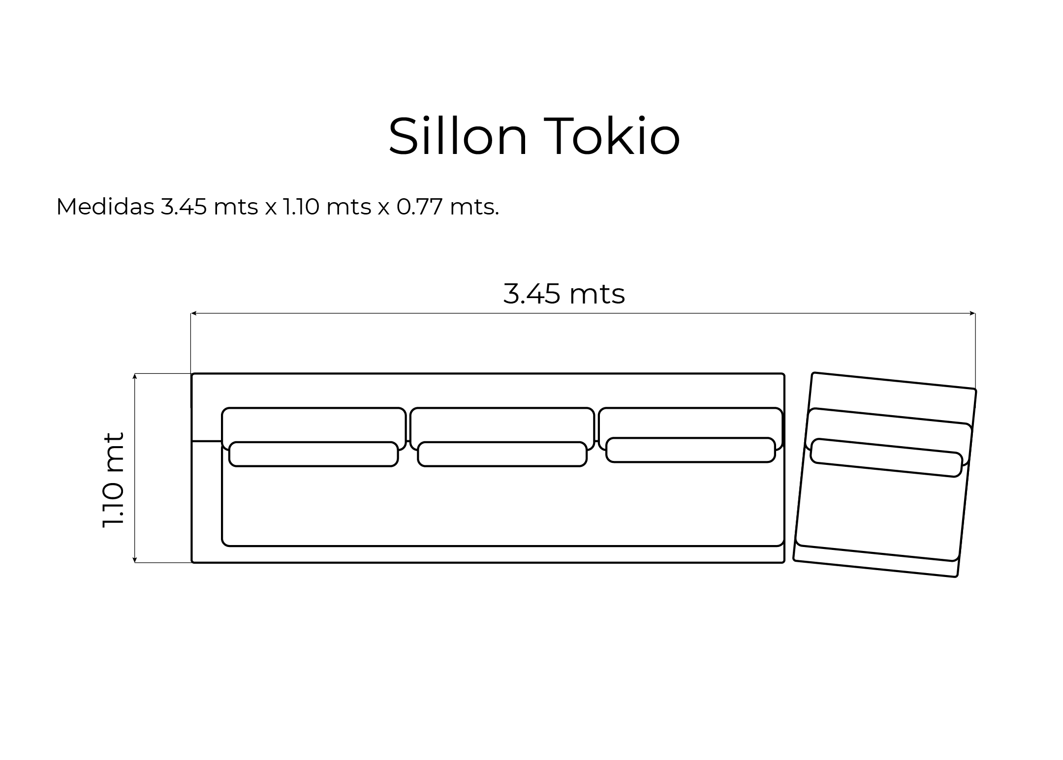 3.45 mts de ancho x 1.10 mts de profundidad x 0.77 mts de alto