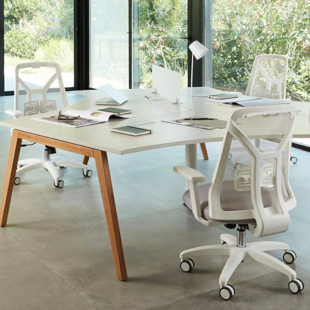 Ajuste en altura y profundidad para acompañar hombros y muñecas en distintas tareas. Sólidos y confortables.