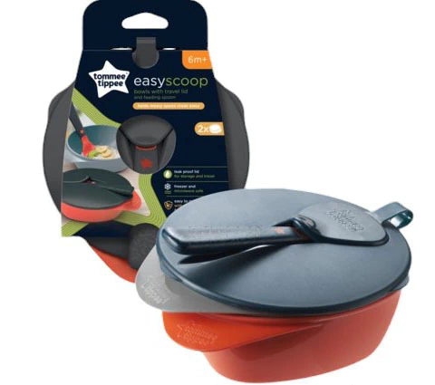 A partir de los 6 meses aproximadamente, tu bebé empezará a explorar el maravilloso mundo de los sabores y texturas a medida que le introduzcas alimentos sólidos. Incluso pueden empezar a alimentarse solos. Estos tazones inteligentes y fáciles de usar hacen que la hora de comer sea sin complicaciones cuando estás fuera de casa.La exclusiva base triangular fácil de recoger hace que sea fácil recoger cada bocado, lo que significa menos desperdicio y limpieza. El mango ergonómico en el lateral significa que son fáciles de sostener sin ensuciarse los dedos.La tapa a prueba de fugas ayuda a mantener el desorden al mínimo y le brinda un práctico almacenamiento con clip para la cuchara de alimentación de fácil agarre.No contienen BPA y son seguros para usar en el microondas. Lávelos con agua caliente y jabón o colóquelos en el estante superior de su lavavajillas.Incluso puedes esterilizarlos para mayor tranquilidad.