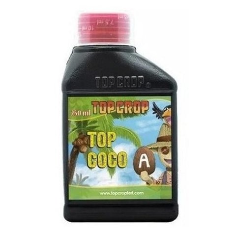Top Coco A + Top Coco Bson soluciones líquidas concentradas eficazmente formuladas y combinadas para la preparación de soluciones nutritivas aptas para su aplicación en sustratos orgánicos de coco.Se trata de un abono equilibrado que contiene los nutrientes principales, secundarios y micronutrientes necesarios para todos los ciclos de la planta.CÓMO USAR TOP COCO A DE TOP CROPRecomendamos diluir a razón de 1 litro de agua una vez por semana, siguiendo las siguientes dosificaciones: 1-3ml. de Top Coco A + 1-3ml. de Top Coco BPara cada fase de cultivo hemos elaborado una dosificación orientativaEnraizamiento 0,5-1 ml A + 0,5-1 ml BCrecimiento 1-2 ml A+1-2 ml BFloración 2-3 ml A + 2-3 mlCOMPOSICIÓN(Pulse para ver)Nitrógeno (N) total: 5.0%Oxido de potasio (K2O) soluble en agua: 4.0%Oxido de calcio (CaO) soluble en agua: 4,4%Oxido de magnesio (MgO) soluble en agua: 1,3%Hierro (Fe) soluble en agua: 0.04% quelado por EDDHSApH: 6.7