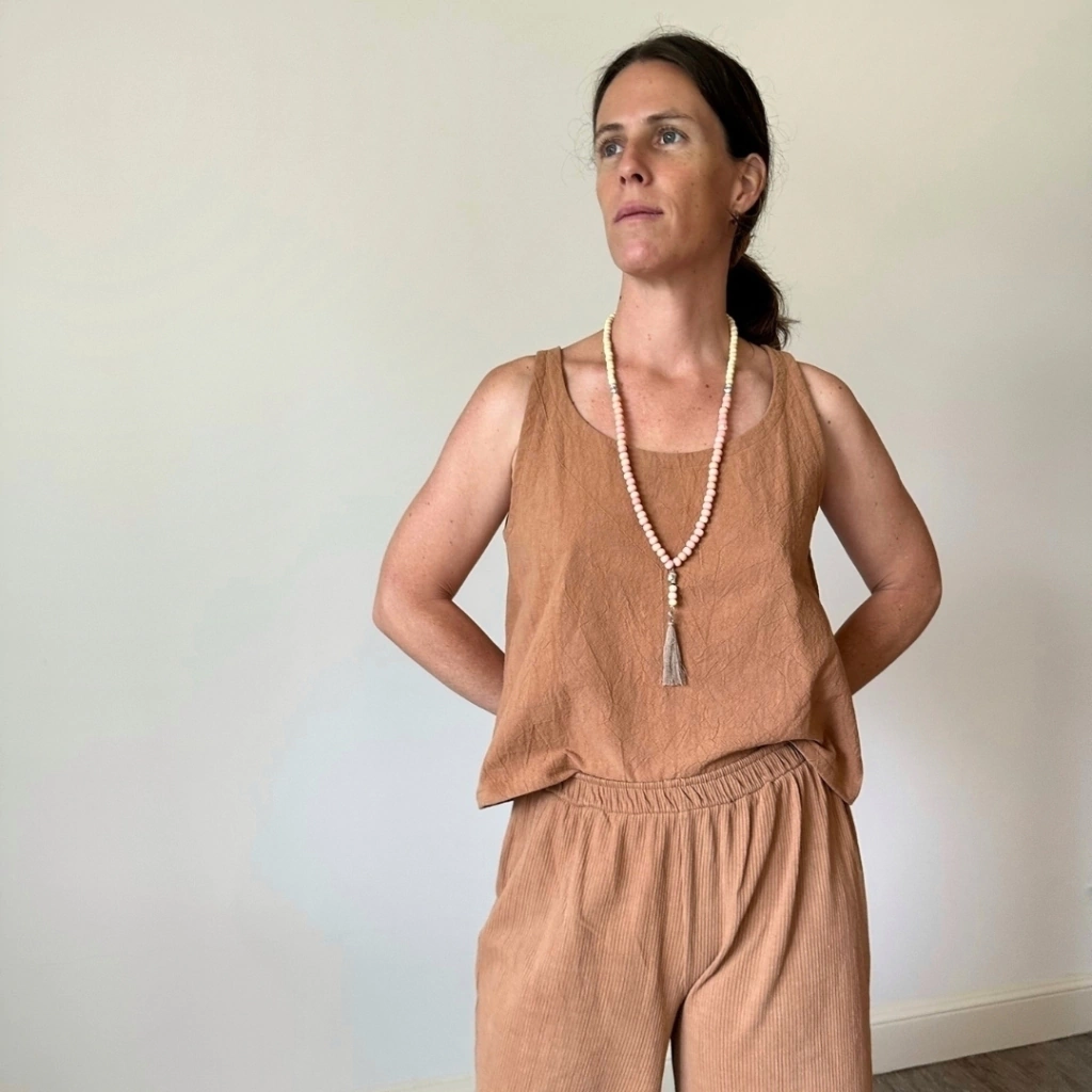 Con mucha felicidad, sumamos prendas sustentables. Esta musculosa está confeccionada en LIENZO 100% algodón agroecológico. Además, la tela es de fibras naturales, teñida con tintes naturales y cosida con hilo 100% algodón.Esta es una técnica ancestral, en la que pueden presentarse variaciones de color en las telas, mismo así en las prendas terminadas, dando como resultado piezas únicas e irrepetibles. Recomendamos evitar salpicaduras de alimentos ácidos como el limón y vinagre por qué pueden decolorar la prenda.Talle M: Contorno de busto: 88cm Contorno de cintura: 98 cm Largo: 50 cm*Las medidas pueden variar +/- 1 cm ya que están realizadas a mano.CUIDADOS: *Lavar a mano con agua fría; *usar jabón neutro; *secar a la sombra evitando exponer las prendas al sol; *no usar blanqueadores; *no usar secadora.