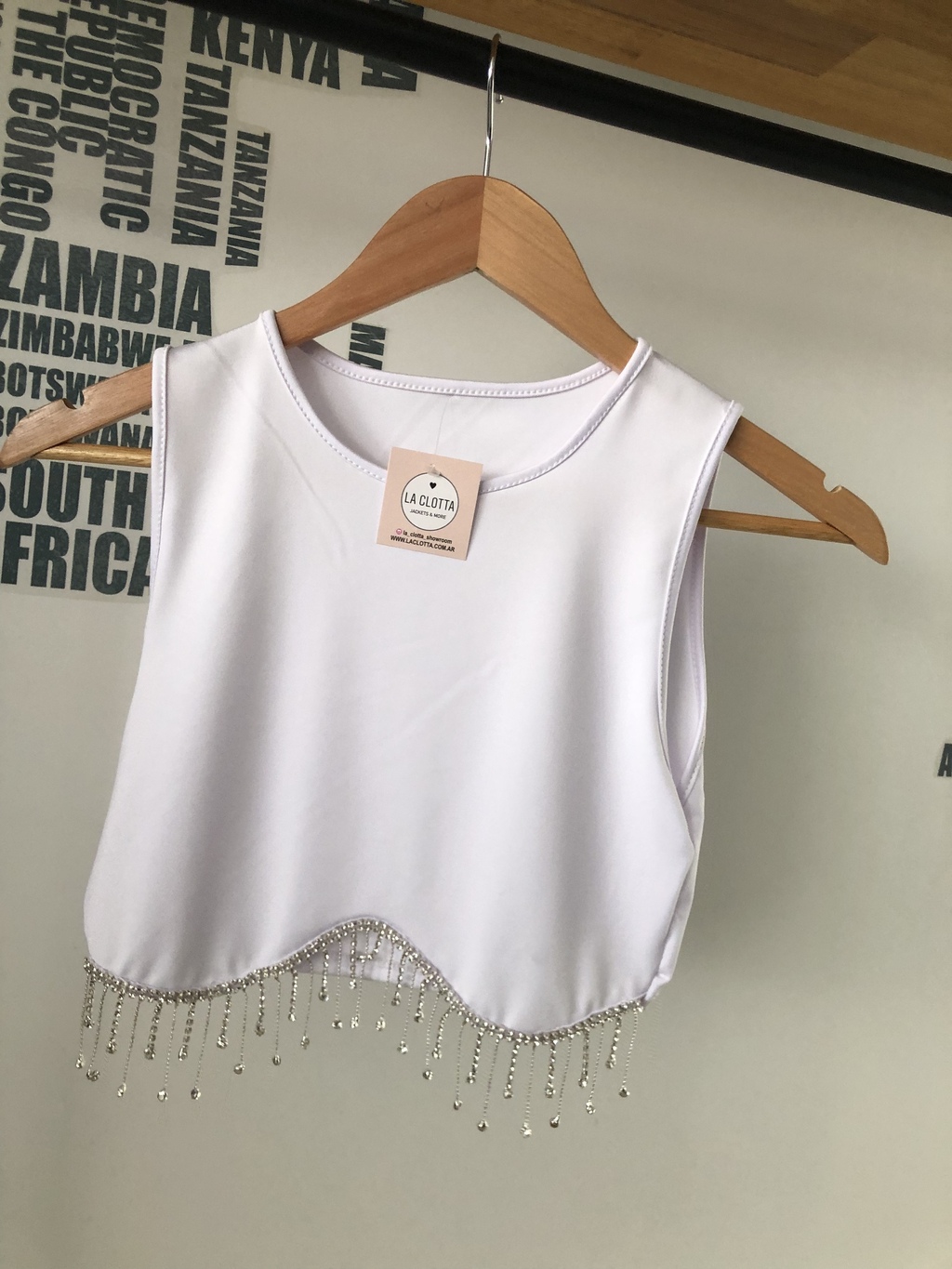 Tops super lindos. Con apliques de piedritas con brillos colgando.