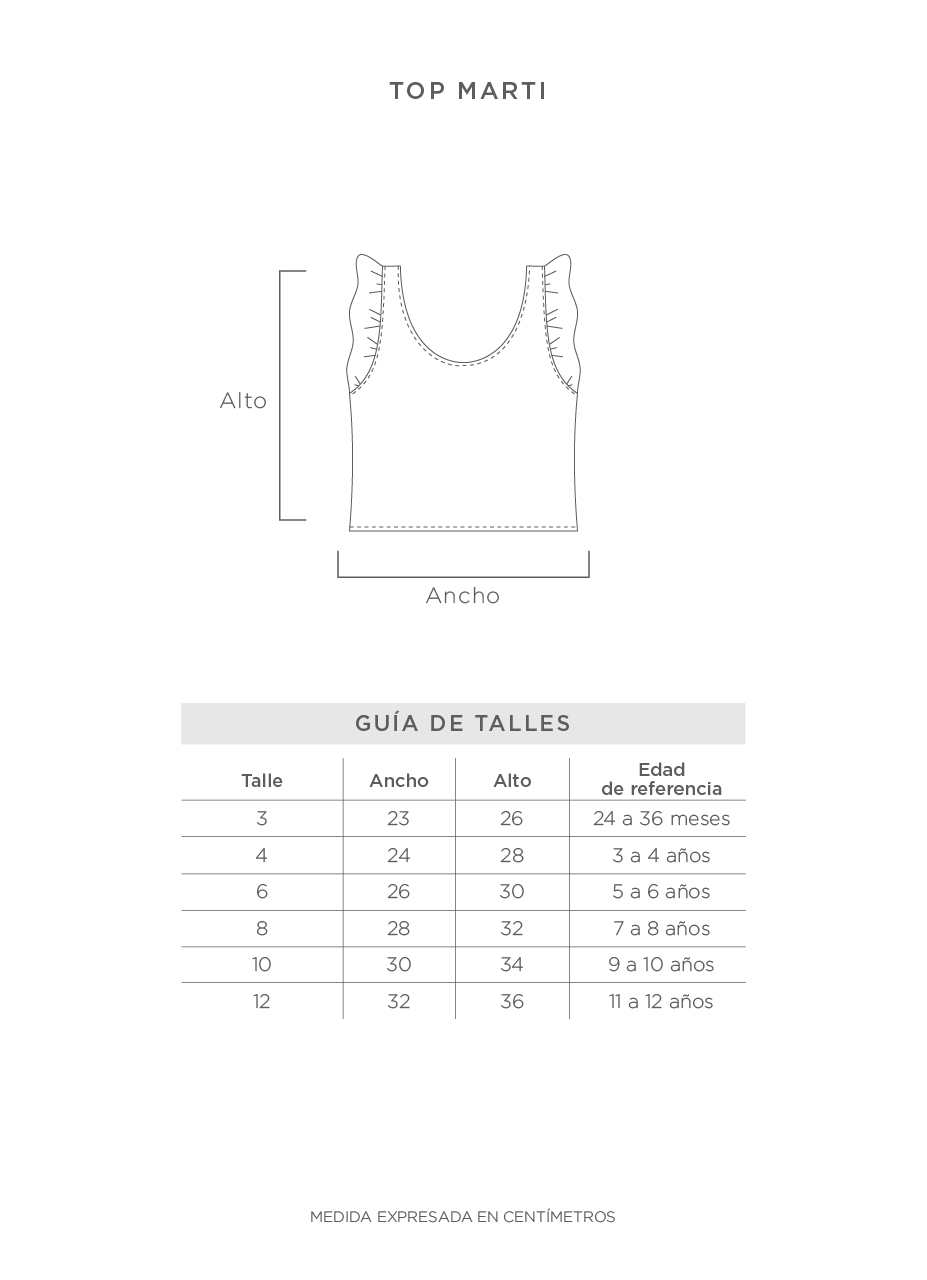 El TOP MARTI tiene el largo ideal para las nenas que quieren pasar de la mallita entera a la de dos piezas. Los volados en los breteles son combinados, lo que lo hace más lindo aún. Las estampas son ideales para TODAS LAS EDADES, y permite que se combinen muy bien con otras bombis.