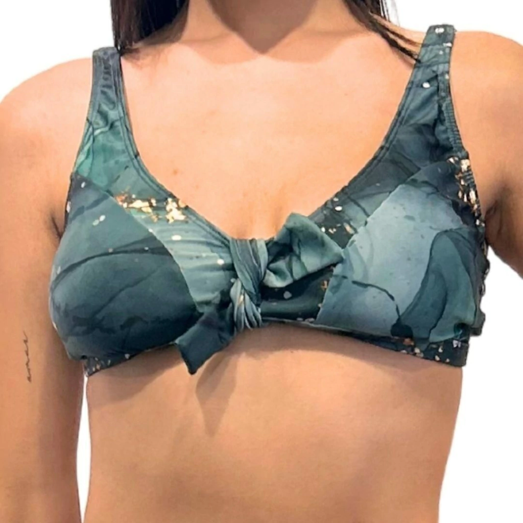 Top con moño desmontable en el centro delantero. Muy buena capacidad de busto. Contorno de espalda y breteles reforzados regulables