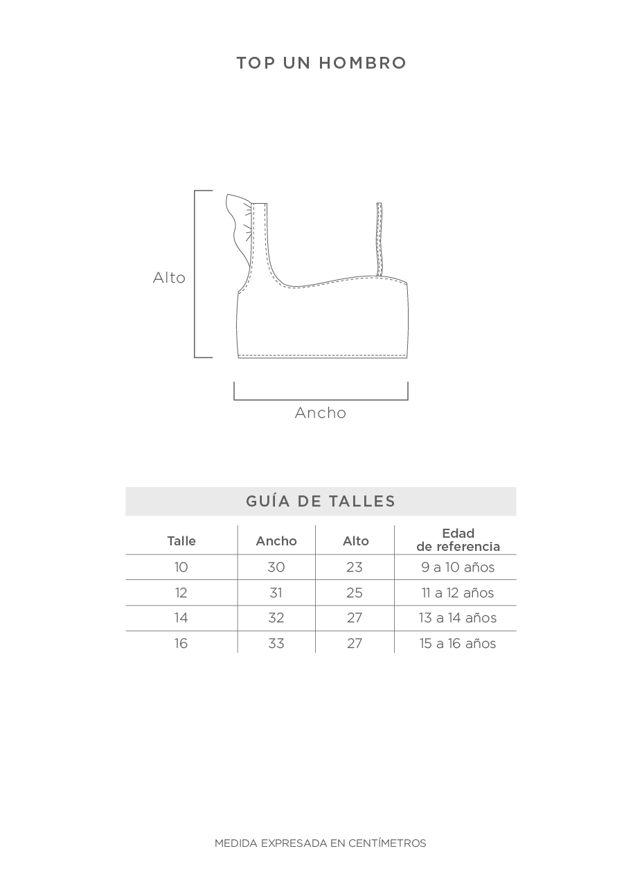 Te recomendamos que midas una malla que ya tengas y la compares con nuestra guía de talles. Las edades de referencia van a depender mucho de la contextura de cada nena, así que lo mejor va a ser que te fijes en los centímetros.