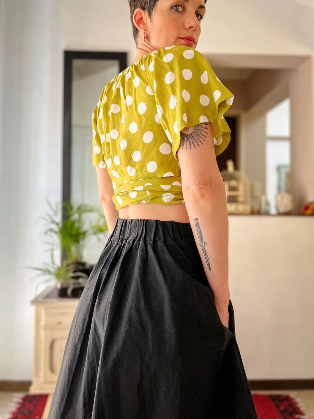 Llegó la blusa más versátil del condado. Si te gustó el Vestido Universo, preparate para enloquecer ⚡⚡⚡Top Universo👉 Es como tener un montón de prendas en una: Se puede poner de mil formas distintas. Podés usarlo con el escote cruzado adelante y envolverte con los lazos para ajustarlo a tu medida. También podés usar el escote cruzado atrás, generando una espalda en v espectacular y un delantero cerrado con aires de chica oriental. Se puede atar con un moño grande, mediano, o con un simple nudito. Podés dejar los hombros descubiertos o tapados. Las mangas son súper acampanadas y protagonistas.👉 Pero... ya sé lo que estás pensando: ¿Es un top cortito? ¿Es largo? ¿Hasta dónde me llegará a mí?La respuesta: El largo lo decidís vos cada día que lo uses, según cuantas ganas tengas de mostrar piel. Porque si te envolvés dando dos vueltas con el lazo, y lo acomodás hacia abajo, el top puede llegarte hasta después del ombligo. Pero si te envolvés con una sóla vuelta de lazos, o si vas encimando las tiras, entonces lográs un top mucho más cortito.🤭 Te prometo que es MUCHO más fácil de lo que parece.💡Y te recomiendo mirar las publicaciones de los demás colores de este Top, para entender mejor cómo puede quedar en distintos tipos de cuerpo y encontrar más ideas sobre cómo usarlo.👉 La tela: Está confeccionado en una viscosa símil lino. Es un género fresquito y liviano, ideal para los días de calor.TALLES:📸 Ana (rulitos rojos, foto 1) está usando talle 5 (XXL) Ella mide 120cm de busto y 110cm de cintura.📸 Dani (foto 2, pelo cortito marrón) está usando talle 1 (Small) Ella mide 90cm de busto y 70cm de cintura.📸 Clau (pelo lacio rojo, foto 3) está usando talle 6 (3XL) Ella mide 130cm de busto y 110cm de cintura.🌈🌈🌈 TABLA DE MEDIDAS:(1) Small: Busto: 80cm hasta 93cm / Cintura desde 65cm hasta 75cm(2) Medium: Busto: 90cm hasta 100cm/ Cintura desde 75cm hasta 85cm(3) Large: Busto: 98cm hasta 108cm / Cintura desde 80cm hasta 90cm(4) XL: Busto: 104cm hasta 114cm / Cintura desde 87cm hasta 97cm(5) XXL: Busto: 115cm hasta 125cm / Cintura desde 96cm hasta 106cm(6) 3XL: Busto: 125cm hasta 135cm / Cintura desde 106cm hasta 116cm