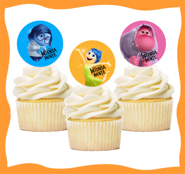 Topper Cupcake Intensamente x 10 redondos de 4,5cm de diametro y 10cm de alto.