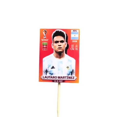 Medida aproximada 6.5cm x 9cm más el palito de brochette para pinchar (pegado atras) que puede ser color madera o negro.