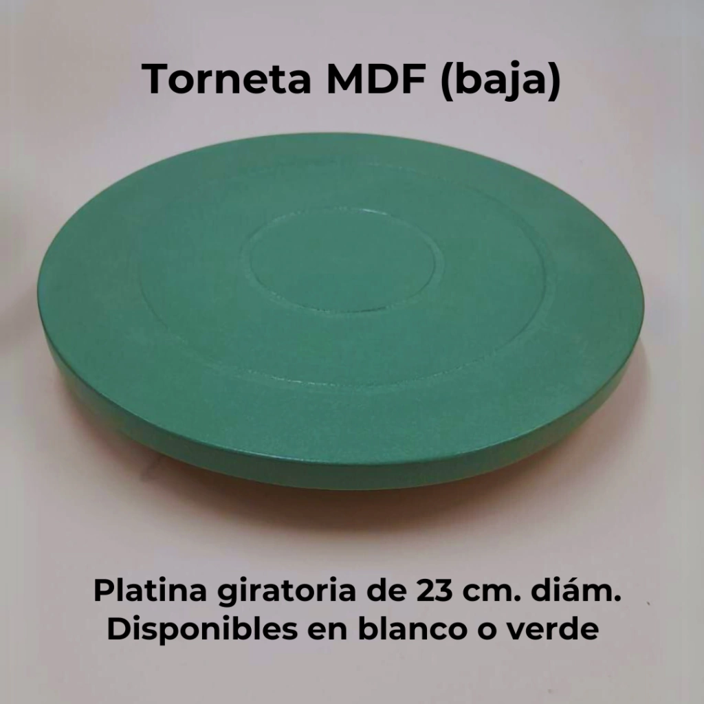 Las Tornetas para cerámica de MDF son una herramienta imprescindible para tus proyectos creativos. Con un diámetro de 23 cm, estas tornetas cuentan con una platina calada que permite un giro suave, facilitando tu trabajo con cerámica.