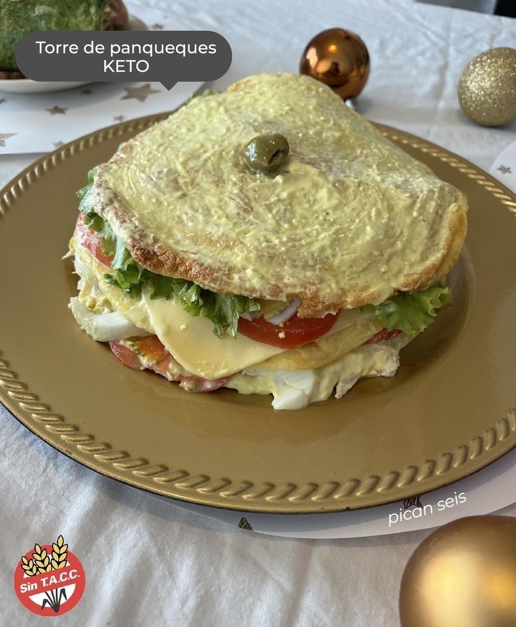 RINDE 6 PORCIONESmasa: pan nube de queso crema y huevo.relleno: pechuga de pollo desmenuzada, huevo, queso, lechuga y tomate.aderezo: queso crema y rawmesan