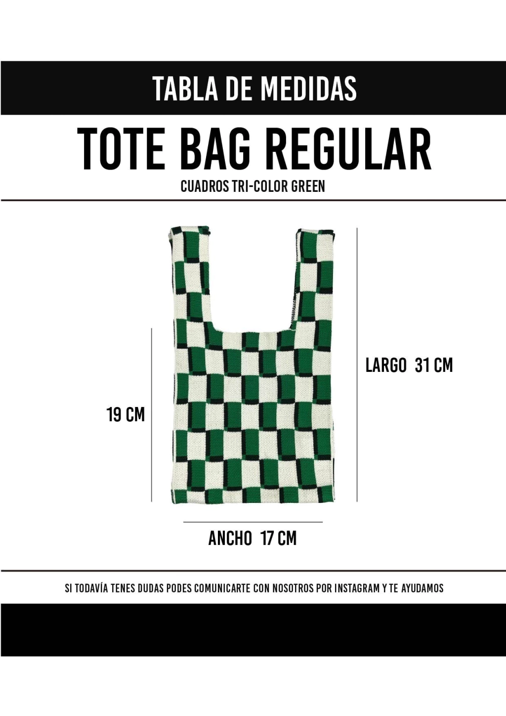 TOTE BAG CUADROS TRI-COLOR REGULAR VERDE