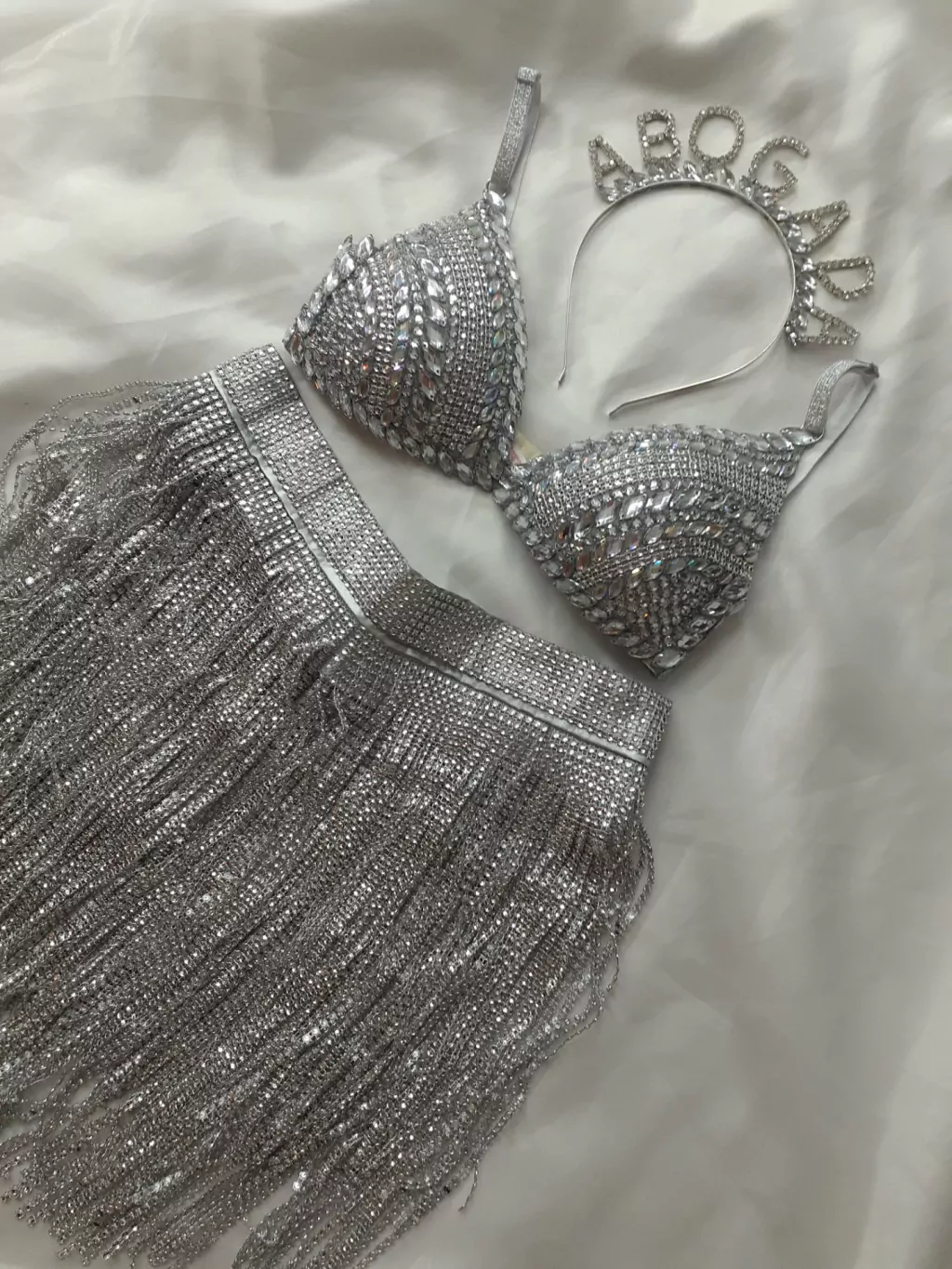 Traje de egresada corpiño de piedras y galones +pollera falso strass color plataAl hacer tu compra especifica en la nota de pedidos los siguientes datosLargo de polleraContorno de cinturaTalle de corpiño