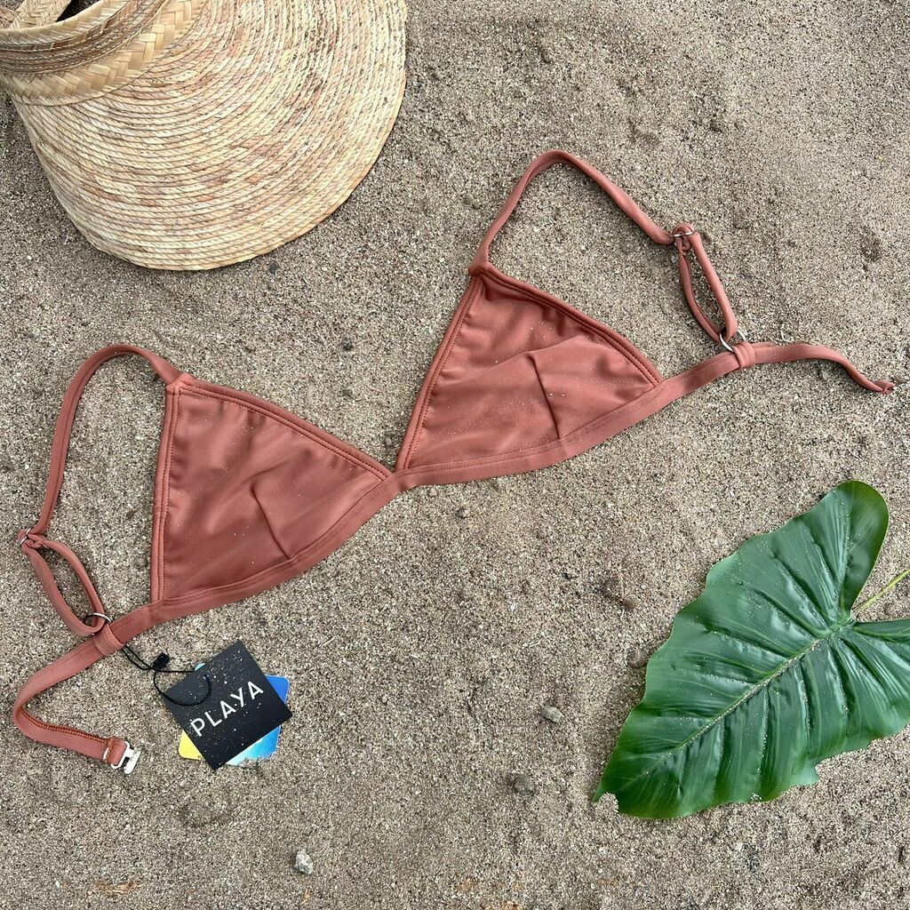 Corpiño tipo triangulito, con tiras regulables para que las ajustes a tu medida. En la espalda lleva una tira con ganchitos desmontables. Confeccionado en Lycra®Beneficios de la Lycra® Xtra Life + Solarmax:Proteccion contra rayos UV.Las piezas duran más que aquellas hechas con elastano común sin el mismo tratamiento.Las fibras de tejido resisten tras la degradacion causada por bronceadores, protectores solares, cloro y calor.Mantiene la forma original de la prenda por más tiempo.Esta prenda sola no garantiza protección completa contra los rayos UV.El indice PPU podrá variar durante el uso y la manera de vestir la prenda.