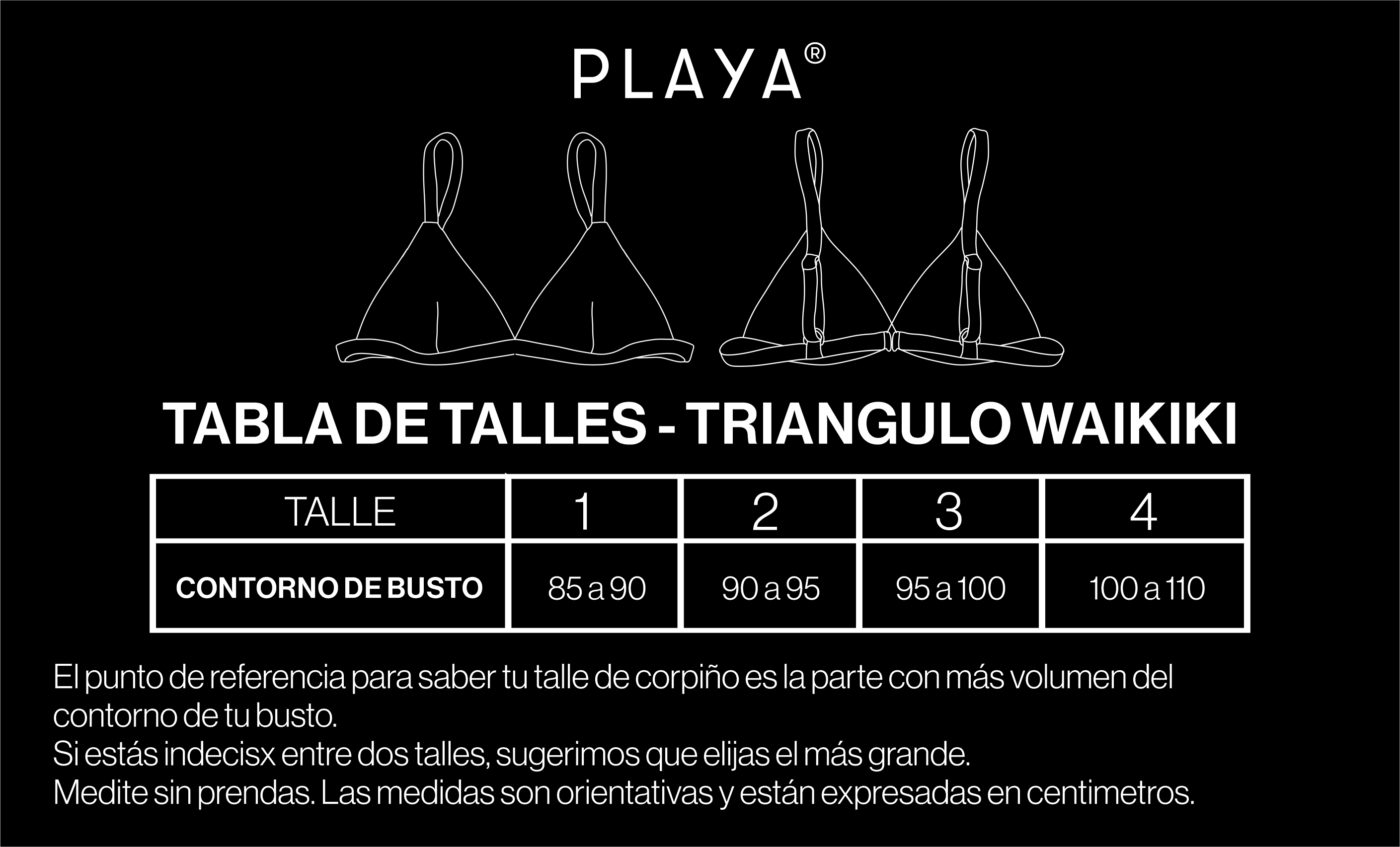 Corpiño tipo triangulito, con tiras regulables para que las ajustes a tu medida. En la espalda lleva una tira con ganchitos desmontables. Confeccionado en Lycra®