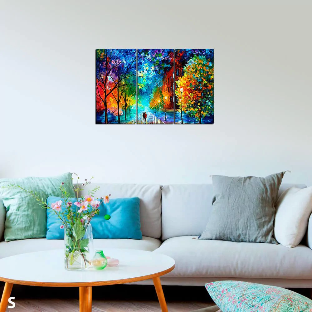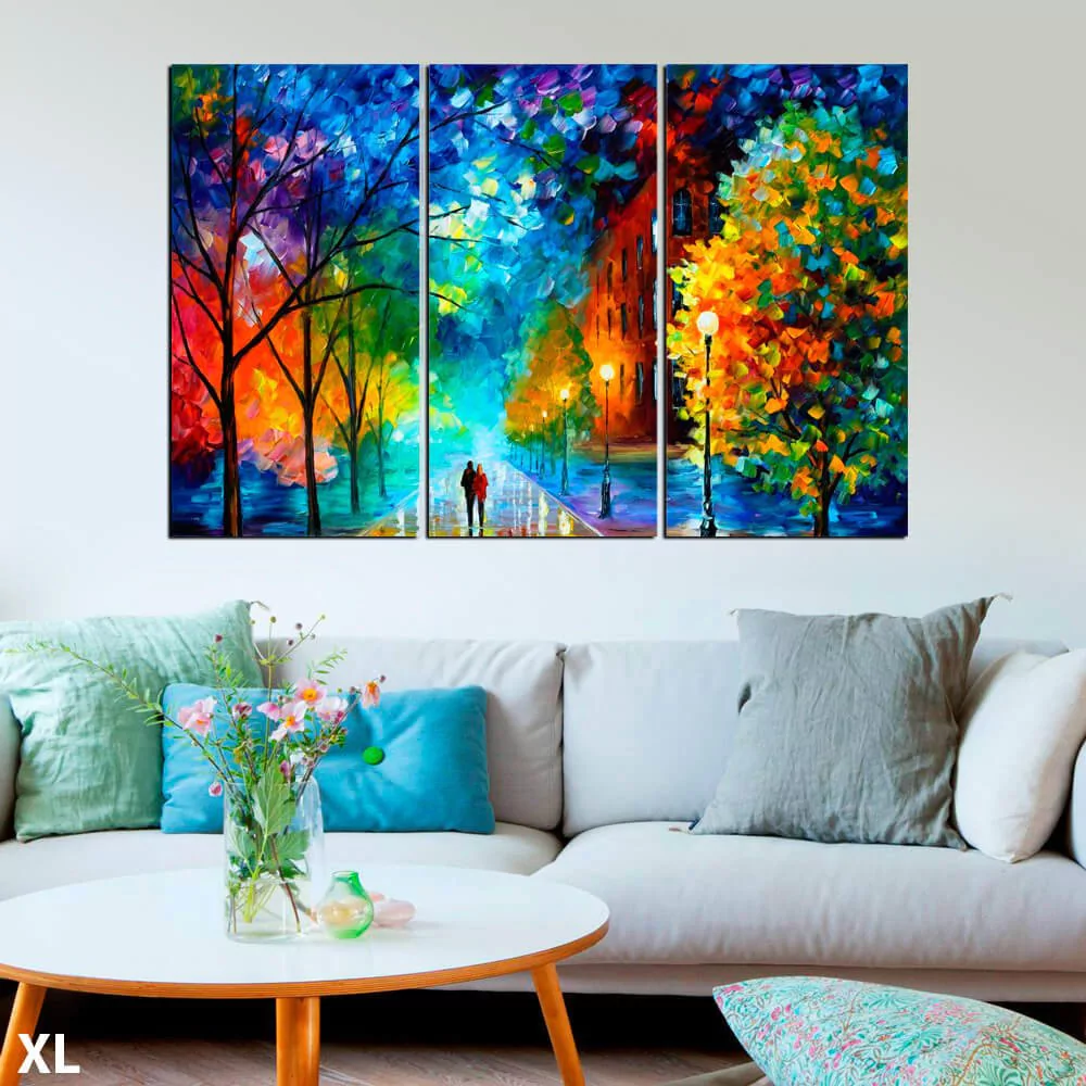 Leonid Afremov, es un pintor bielorruso nacido en Vitebsk en 1955. Sus pinturas generalmente refieren a paisajes, escenas urbanas, flores, marinas y retratos coloreados vívidamente. Sus obras contienen una alegría incomparable y es un referente de la pintura y el estilo moderno.¿Como son los cuadros?Super livianos de madera macizaImpresos en blackout premium con tintas látex ultra nitidasSencillos de colgar con instruccionesÚnicos y originales de Alberta¿Cómo interpreto las medidas?Siempre adquirís todas las piezas del modelo que elijas. Las medidas se interpretan como en lasiguiente tabla:¿Cómo es el embalaje?Utilizamos1)pluribol de alta densidad (burbújas) y2)cartón corrugado. Cuidado y protección garantizada:GÚIA RÁPIDA DE COMPRASeguí estos simples pasos: