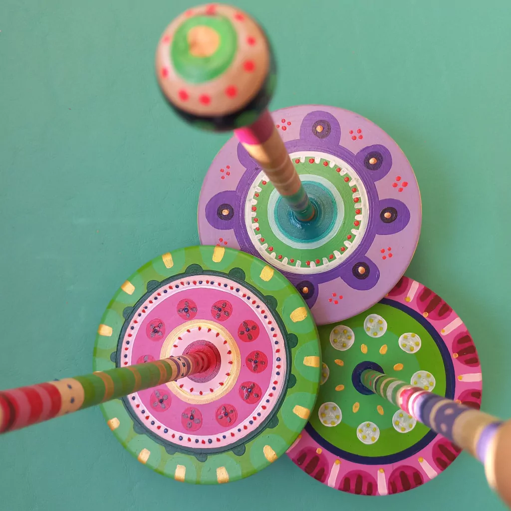 Pintado a mano, en madera, mide 18 cm de diámetro