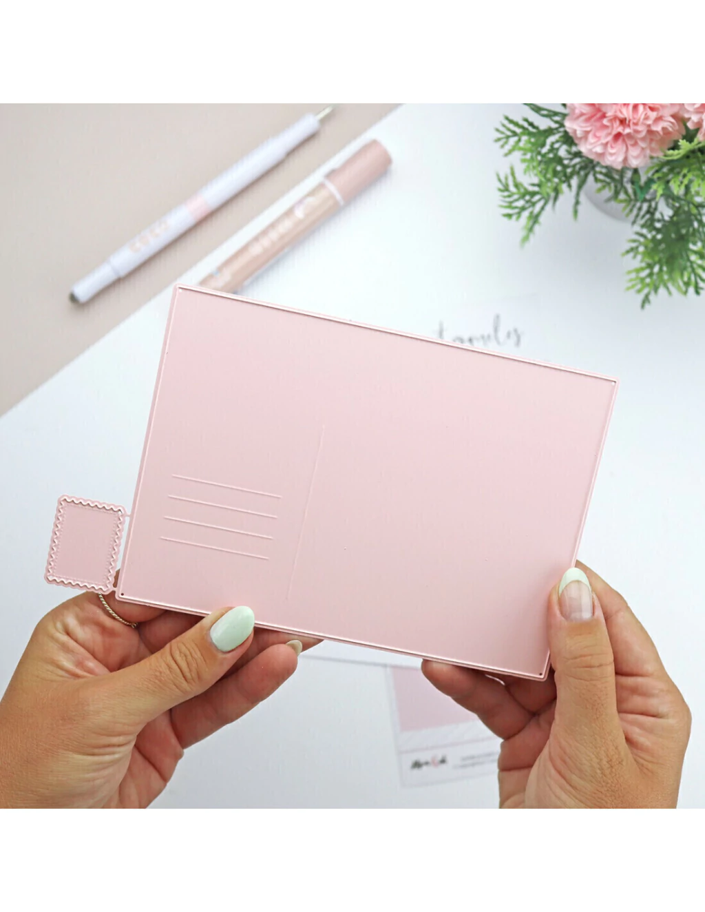Troqueles de Acero recubiertos de Teflón. Contenido: 2 troqueles metálicos. Tamaño postal: 10,5x15 cm. Tamaño sello: 2x3 cm.
