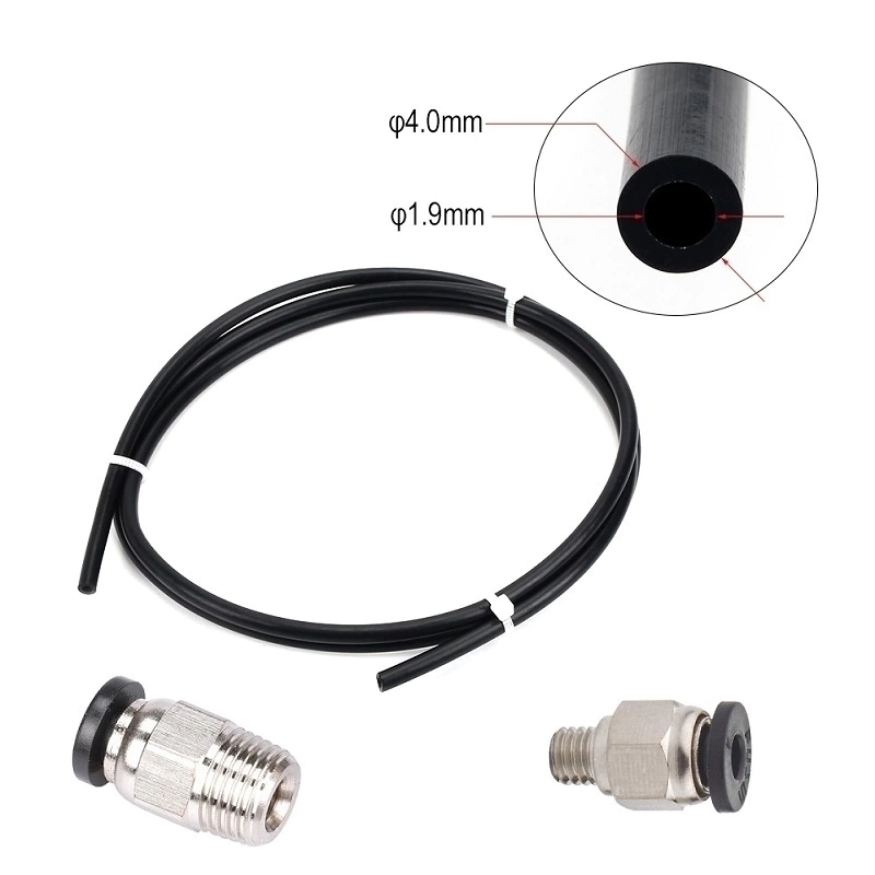 Kit de tubo de teflón tipo Capricorn de 50cm para filamento 1.75mm, diámetro interno de 1,9mm y externo de 4,0mm, con 2 acoples racor, PC4-M6 y PC4-01.