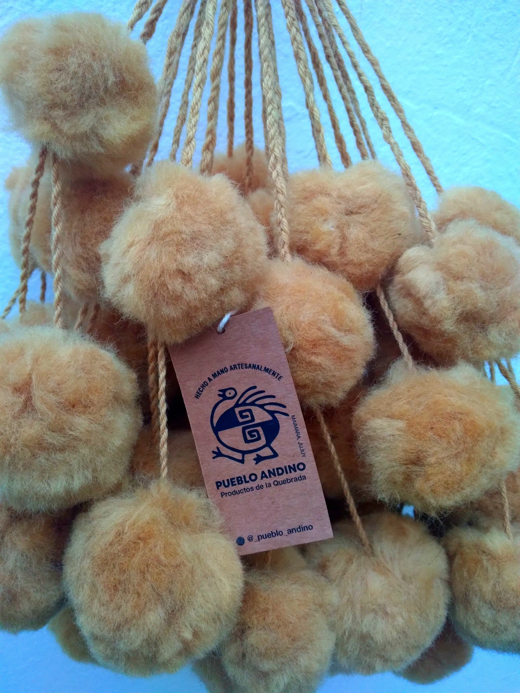 Tulmas jujeñasColor Cebolla o Beige intensoEn pompones de llama y ovejaLargo 1 mts 6 pompones por tulma