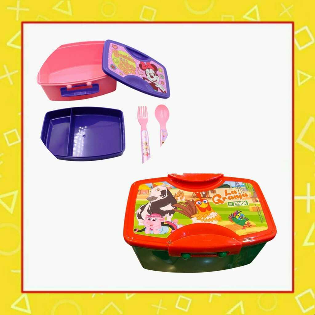 Tupper con DivisionesVarios Modelos Disponibles!Incluye Cubiertos!Modelo: La Granja de ZenonMedidas:10cm de largo aproximadamente17cm de ancho aproximadamente