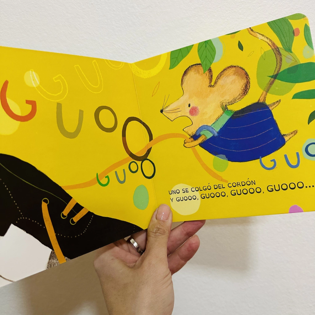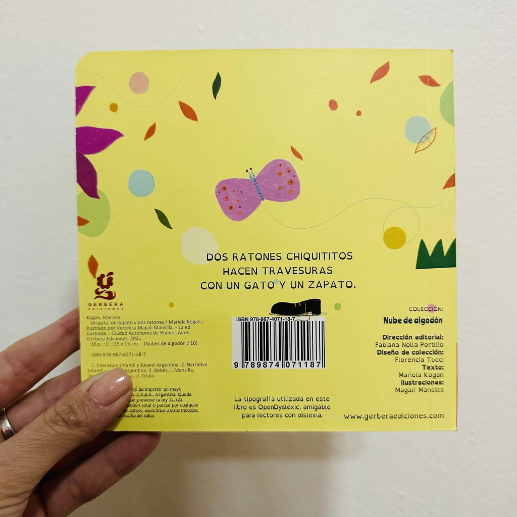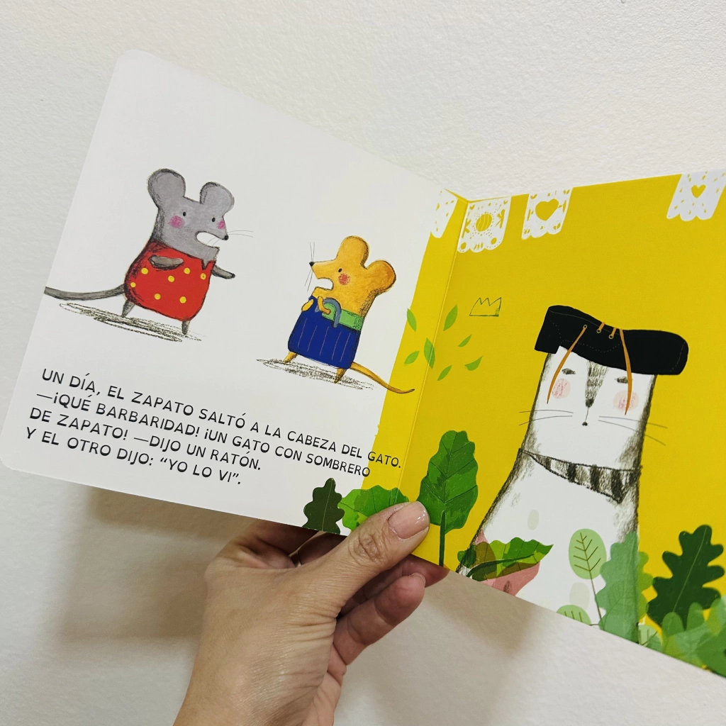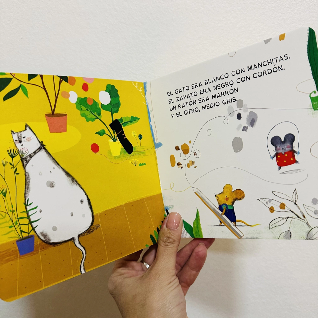 Dos ratones chiquititos hacen travesuras con un gato y un zapato.