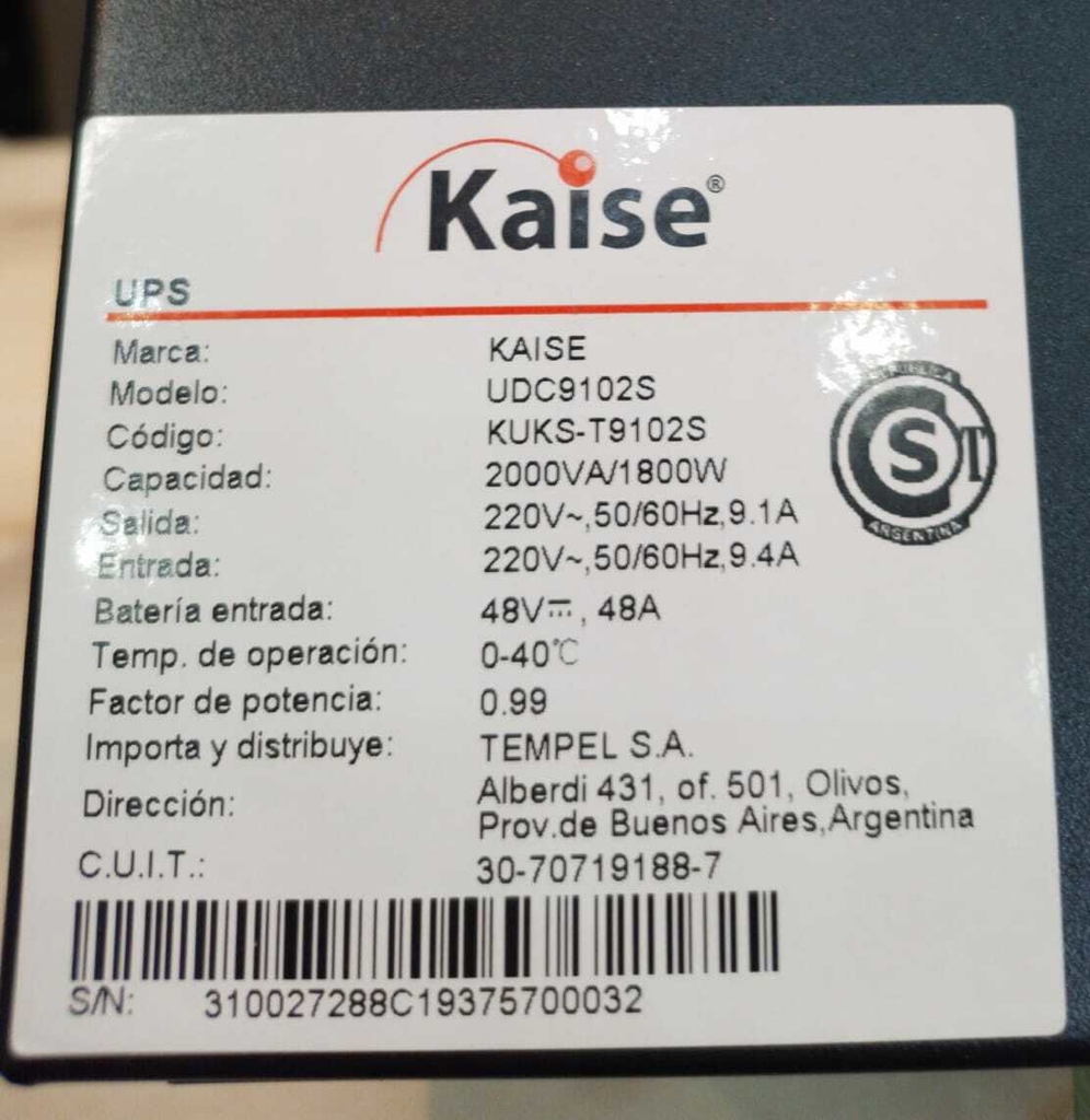 Marca: KaiseModelo: UDC9102SCapacidad:2000VA/1800WTemp. de operacion: 0-40°CFactor de Potencia: 0.99RETIRO Y FORMAS DE ENTREGAPuede pasar a retirar o conocer los equipos por nuestro local / showroom ubicado en Av. Mitre 1360 - Avellaneda - GBA SurPodemos enviar el equipo a todo el pais, el precio no incluye FLETE- Costo de envío a cargo del cliente.Forma de pago: Contado / Transferencia / Mercadopago--- Instalación y Capacitación- Servicio Post Venta- Kit Vectores--CONSULTASWhatsapp: 011 4426-7202Email:[email protected]