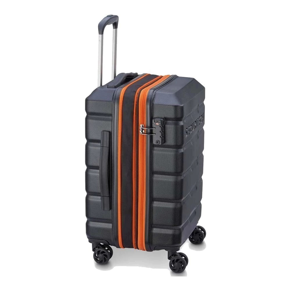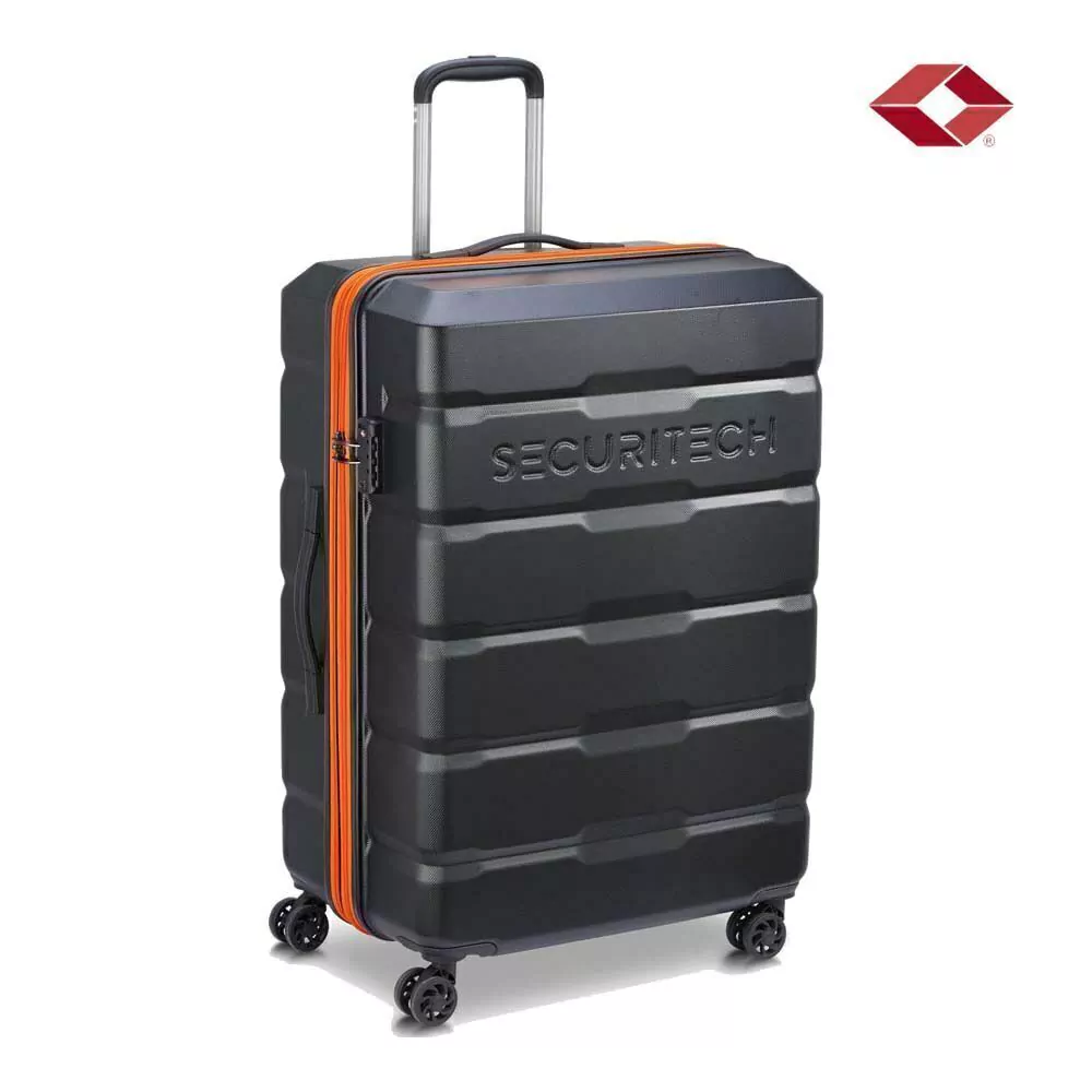 - Medidas: 75.50 x 49.50 x 32 cm.- Peso: 4.5 kg- Capacidad: 98+10 Lts. (Expandible)- Material: ABS / Policarbonato- Marca: Delsey- Origen: China- Equipaje Grande expandible color negro con cierres naranjas que las hacen fácilmente reconocibles cuando se sacan del baul de un automóvil o de la cinta transportadora.- Sistema de carro ajustable de dos pasos.- 4 Ruedas dobles multidireccionales con Giro 360° que Aseguran una maniobrabilidad excepcional y mantienen el peso del brazo cero.- Candado empotrado con combinacion TSA que le permite a las autoridades de países específicos como Estados Unidos revisar su maleta sin dañarla.- Interior espacioso con correas de amarre y panel divisor de malla para crear un sistema de embalaje organizado.- Expandible con Doble Cierre que Permite aumentar el volumen de carga de la valija en cualquier momento para llevar más objetos.Zip Securi Tech:Sistema exclusivo de cierre del equipaje, 41 veces más resistente que un cierre tradicional para maximizar el nivel de seguridad y para evitar riesgos de robo por la apertura de la cremalleras.Fabricado en material robusto y resistente que aseguran su durabilidad.Garantía MundialToda pieza de equipaje DELSEY cuenta con una garantía contra cualquier defecto de fabricación durante el periodo indicado en el certificado de garantía.