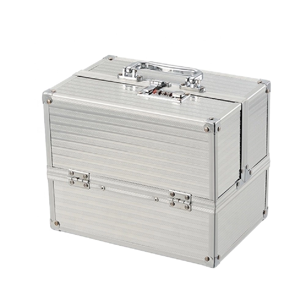 MALETIN PORTA COSMETICOS Practico y Compacto con gran capacidad interiorModelo: BMCA331Medidas: 25*17*20 cmPeso: 0.8 kgCon 4 Bandejas plegablesElegante Diseño en AluminioForrado integro en panaFácil de TransportarFuerte y RobustoElegante DiseñoExcelente terminaciónCon traba y cerradura (no se abre por accidente)Manija de Aluminio