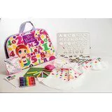 Valija para jugar a la Maestra:. Edad sugerida + 3 años.Contenido: delantal de maestra, letrógrafo para dibujar letras, abecedario completo de madera con doble juego de vocales, pizarrón, tizas, borrador , títeres del General San martín y de Manuel Belgrano, lápiz negro y goma de borrar, papel y CD interactivo.Contenido del CD: pizarra electrónica para formar palabras e imprimir y abecedarios para imprimir, colorear y recortar. Medidas: 28 x 42 cm