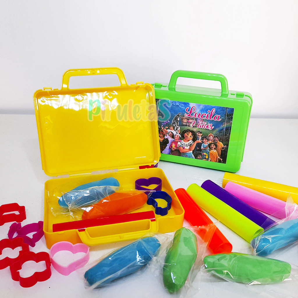Valijas ideales para Souvenirs y Cumpleaños, super completas!!!!Son de plástico duro, personalizadas de 1 solo lado.Medida: 14x10x4,5cm (SIN MANIJA)Medida: 14x12x4,5cm (CON MANIJA)SE ENTREGAN EN COLORES SURTIDOS, NARANJA, VIOLETA, VERDE, CELESTE, ROSA, AMARILLO, ROJO Y AZUL.El precio publicado corresponde a: 10 VALIJITAS PERSONALIZADAS + 20 MASAS + 20 CORTANTES + 10 PALITOS. (Los colores de las masas, cortantes y palitos son únicamente surtidos)Las masas contienen 30grs aprox cada una , cada valijita contiene 2 masas (60gr)* Hacemos 1 mismo diseño cada 10.