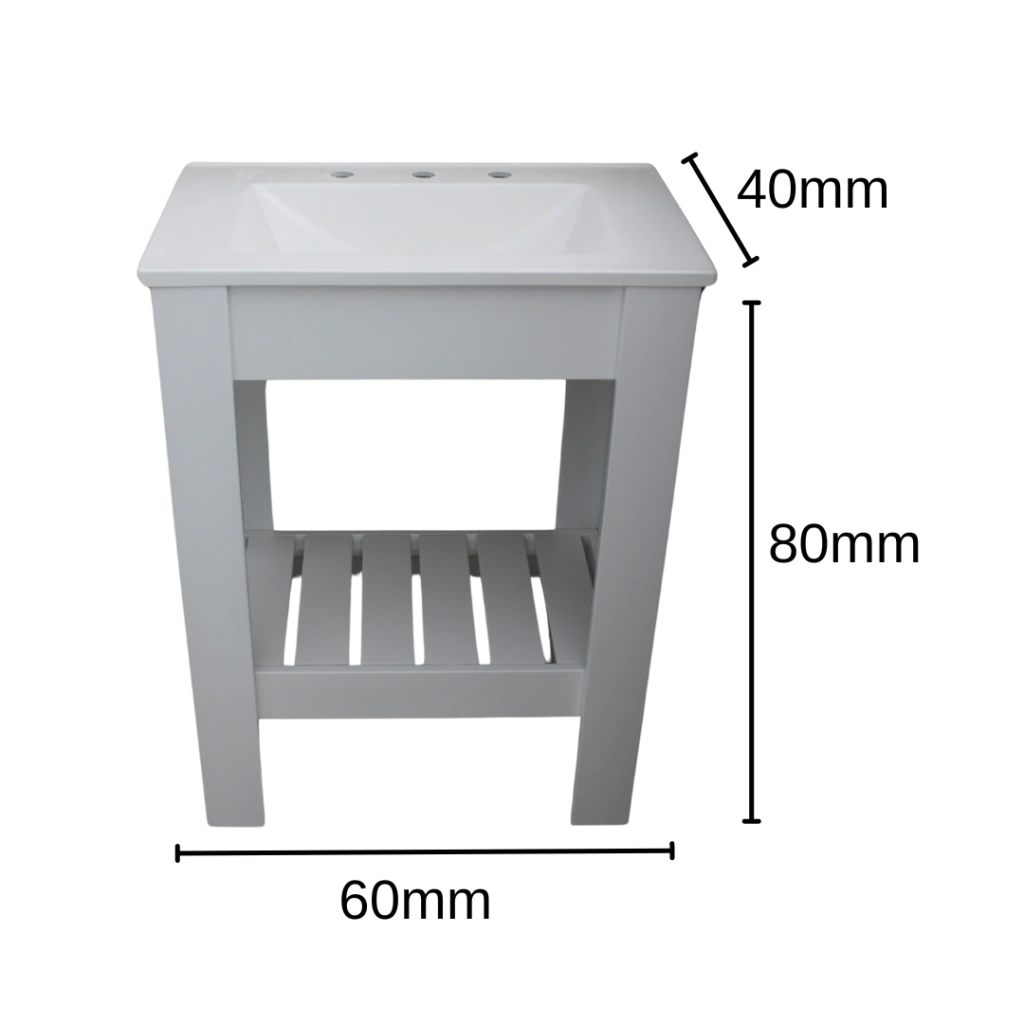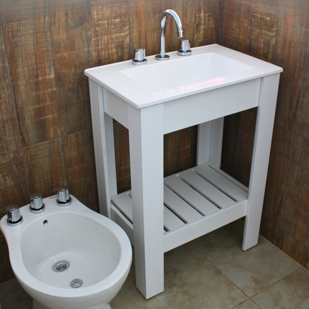 Características- Marca: SM.- Modelo: Country 60 Blanco.- Vanitory de pie con Deck.- Medidas: 60cm Ancho x 80cm Alto x 40cm Profundidad.- Material Mueble: Melamina.- Color Mueble: Blanco.- Inlcuye 4 patas en base y 1 Estante Deck.- Incluye Mesada 3 Agujeros.- Material Mesada: Sintetica (Marmolina).- Color Mesada: Blanca.- Compatible con Griferia de 3 agujeros.***EL MUEBLE SE ENTREGA ARMADO, LA MESADA POR SEPARADO***