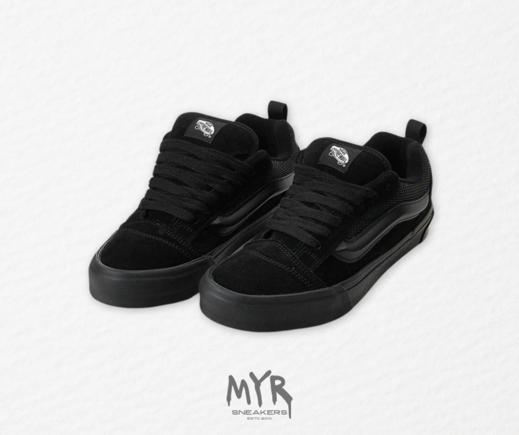 Skate clásico con estética robusta y monocromática. Las Vans Knu Skool "Triple Black" reimaginan una silueta de los 90 con proporciones exageradas, gamuza premium y un acabado completamente negro que aporta sobriedad y carácter.