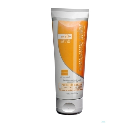 Vansame Solar Crema x 200 g. FPS 50+VANSAME SOLARFPS 50+Protección muy alta FPS 50+Para piel extremadamente sensible a la quemadura solarProtección solar UVB + UVAResistente al aguaApto para su uso en niños a partir de los seis mesesContenido Neto 200 g.Modo de uso: Aplique abundantemente Vansame Solar 30 minutos antes de la exposición al sol. Reaplicar siempre luego de sudoración intensa, nadar o bañarse, secarse con toalla y durante la exposición al sol. No aplicar en el área ocular.Es necesaria la reaplicación del producto para mantener su efectividad.Ayuda a prevenir las quemaduras solares.Para niños menores de 6 (seis) meses, consultar al médico.Este producto no ofrece ninguna protección contra la insolación.Evite la exposición prolongada de los niños al sol.Si la cantidad aplicada no es adecuada, el nivel de protección será significativamente reducido.Dermatológicamente testeado / HipoalergénicoNo fototóxico¡COMPRALO!