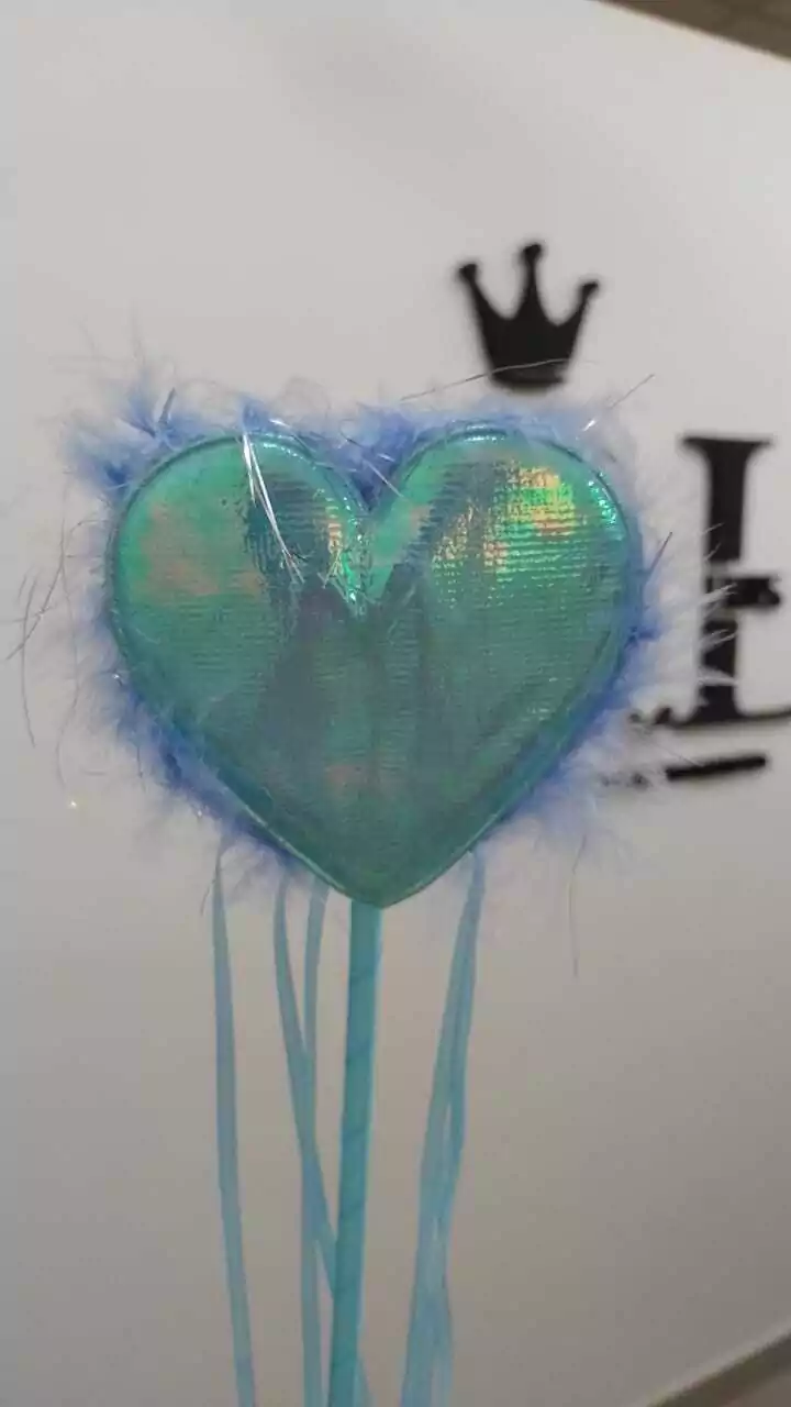 VARITA MAGICA CORAZON CELESTE CON FLECOS x1 U