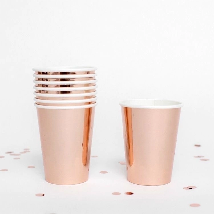 Vasos de polipapel color rosa gold metalizado x 6 unidades.