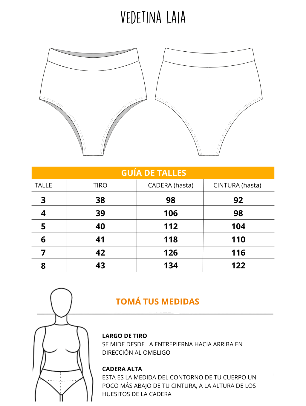 La Laia es la reversión de nuestra clásica Arlet, creada para que muchas vuelvan a animarse a la bikini y se vean diosas. Con unos centímetros extra en el abdomen, es aún más tiro alto, aportando seguridad y comodidad sin perder estilo. Es un diseño que contiene, estiliza y realza, ideal para disfrutar del verano sintiéndote increíble ❤