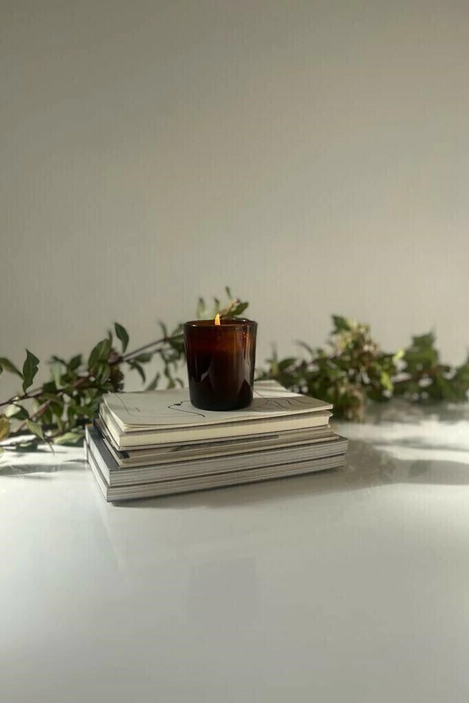 Vela de soja AmbarAroma tilo y lavanda.Duración 55-60 hs aproximadamentePresentación: vaso ambar de vidrio. Una vez que la vela se consume te queda el vaso!Recomendaciones:Encender por primera vez por un periodo de al menos 1 hora.Recortar periódicamente la mecha.No usar más de 5-6 hs. seguidas.Hecho a mano en Buenos Aires por Apotheke