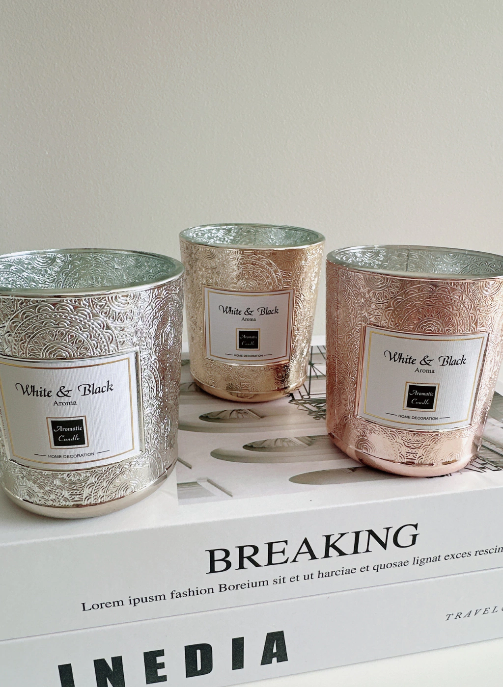 Vela frasco de vidrio tramadoColores: Plata | Dorado | CobreMedidas: 7x8cm