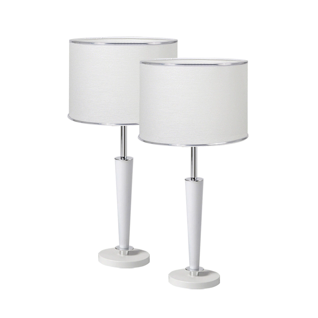 CARACTERÍSTICAS VELADOR x 2 UNIDADES- Cuerpo blanco/negro texturado combinado con cromo- Base diámetro 10cm- Altura total 45cm- Pantalla diámetro 20cm. Altura 15cm- Pantalla realizada en lienzo blanco/negro con detalle borde cromo- Zócalo E27- No incluye lámpara