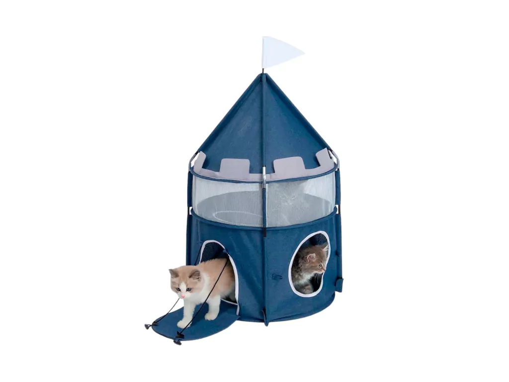 Castillo plegable para gatos de 2 nivelesMedidas: 85 x 48 cm• Incluye un cojín suave y acolchado• Puente levadizo con cuerdas separables de seguridad• La malla garantiza un flujo de aire óptimo• Tejido de alta calidad al que no se pega el pelo de gato• Base con peso para mayor estabilidad• Fácil de plegar y guardar (bolsa de almacenamiento incluida)Tejido duradero que no retiene el peloEl Vesper Castle está fabricado con tejido duradero y de alta calidad que no retiene el pelo de gato. Esta torre de gato es perfecta para gatos inquietos.Combina con el Túnel Vesper¿Quieres expandir la base lunar de tu gato? Engancha la entrada inferior del Rocket al Túnel Vesper ¡y tendrás máxima diversión!EL TUNEL SE VENDE POR SEPARADO.