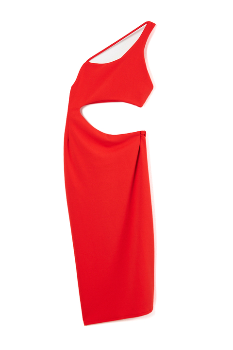 Vestido de punto creppe con corte asimetrico cut out en cintura y largo midi