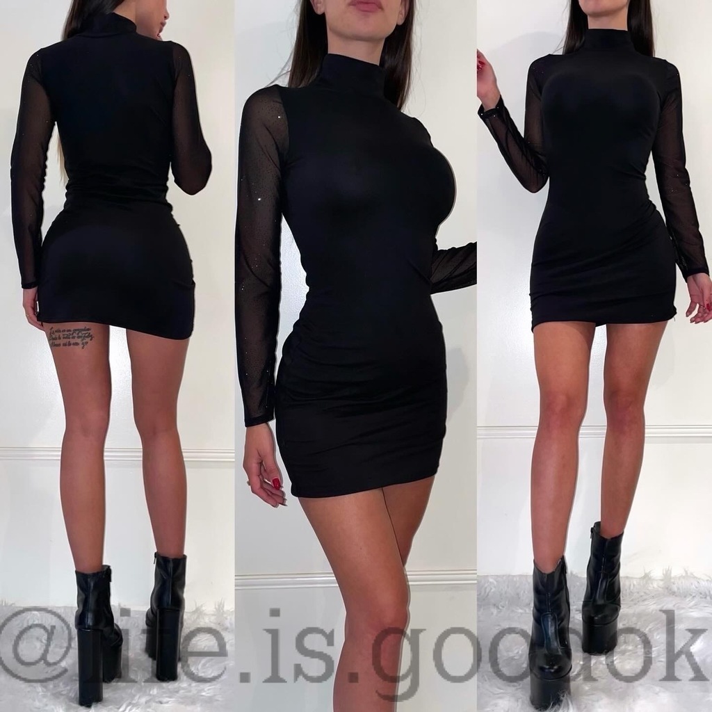 Vestido Polera Con Mangas De Tul y Glitter Talle único (sede hasta un 40/42 )
