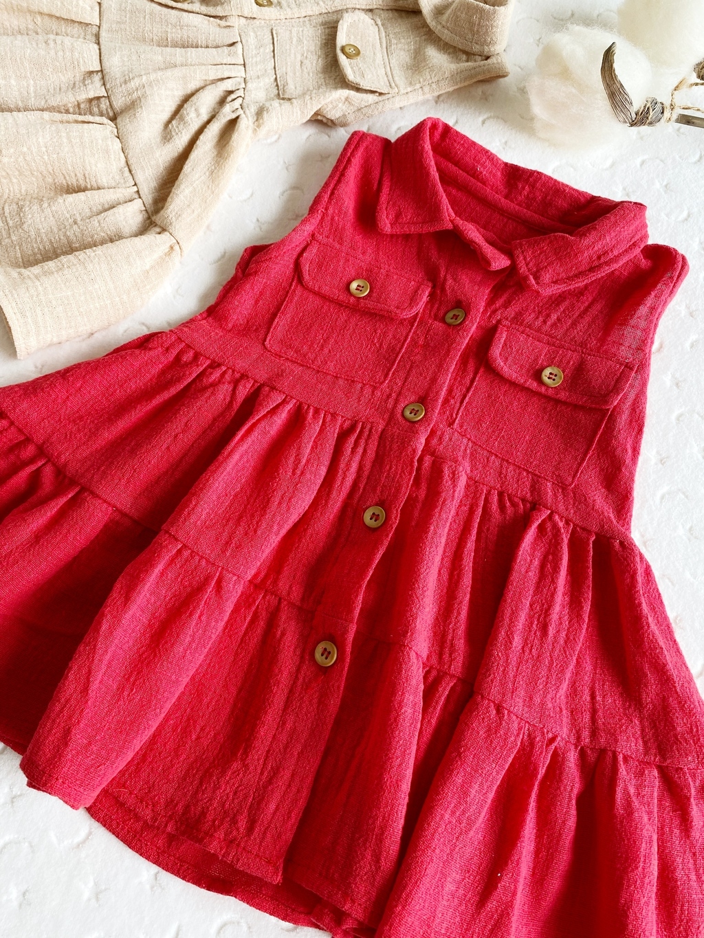 -Con bolsillos y botones de madera en la parte delantera para acceder a la prenda.