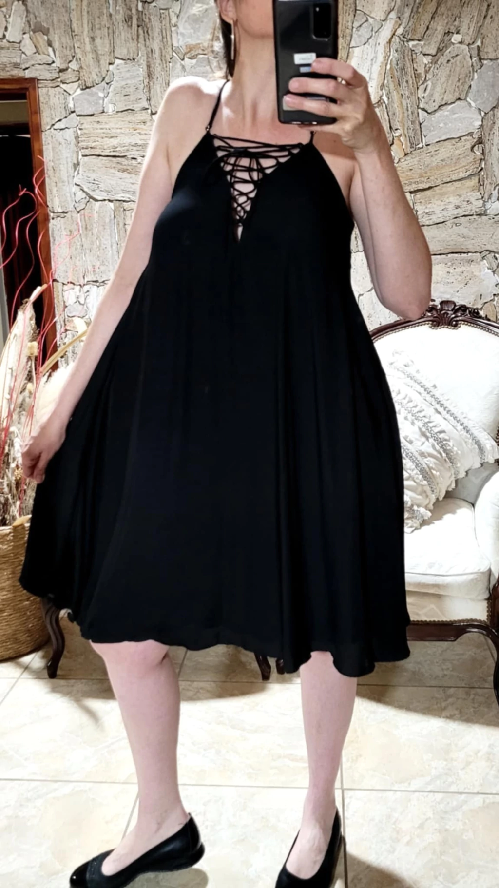 Vestido corte evasé, confeccionado en seda premium, blanda, gruesita, de textura muy, muy suave.. Delantero en alto busto, trenzado. Posee forro interno. Movilidad y caída..Talle único que se adapta hasta un L amplio, o un XL justo. Ver medidas que dejamos a continuación y comparalas con las de tu cuerpo para asegurarte que va a quedarte. ( no es elastizado )